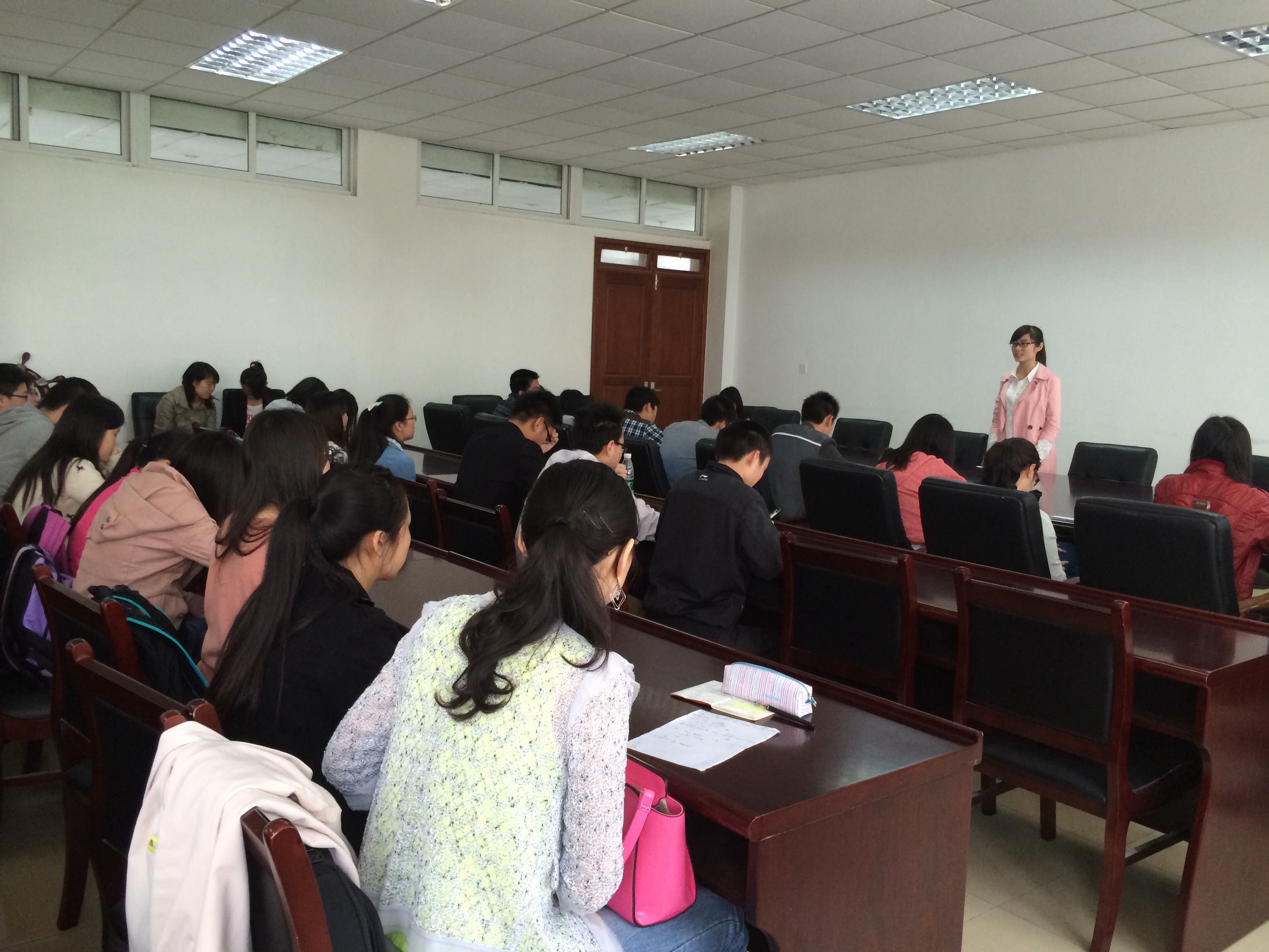 本次答辩大会由第二学生党支部成员黄雅竹同学主持,第一学生党支部书记聂平老师、第二学生党支部书记黄晓娟老师,11级辅导员徐昊翔老师和学生党员代表参加,部分非党员同学也前来观摩。答辩会的评委和工作人员由老师和学生党员代表担任。答辩会流程为,首先由参加答辩的发展对象依次上台进行自我介绍,阐明入党动机、对党的认识、各类获奖和综合表现等内容,然后评委提问,答辩者逐一作答。