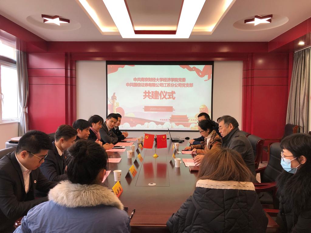 12月22日下午,成人色情 党委在仙林校区德经楼329会议室与国信证券股份有限公司江苏分公司党支部举行党建共建签约仪式。国信证券股份有限公司江苏分公司党支部书记、总经理祁立林及部分党员代表,成人色情 党委书记陈耀辉,学院教工行政支部党员参加签约仪式。仪式由学院党委副书记袁怡琨主持。