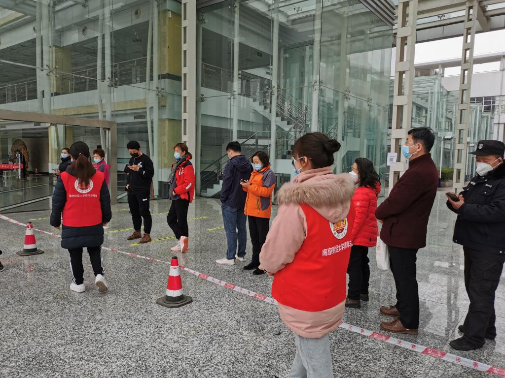 随着南京疫情防控形势的日渐严峻,校园常态化核酸检测任务也越来越重,维持现场秩序,确保检测工作安全、高效、有序进行十分重要。在校党委组织部的号召下,学院党委积极行动,各教工支部迅速响应,组建成人色情