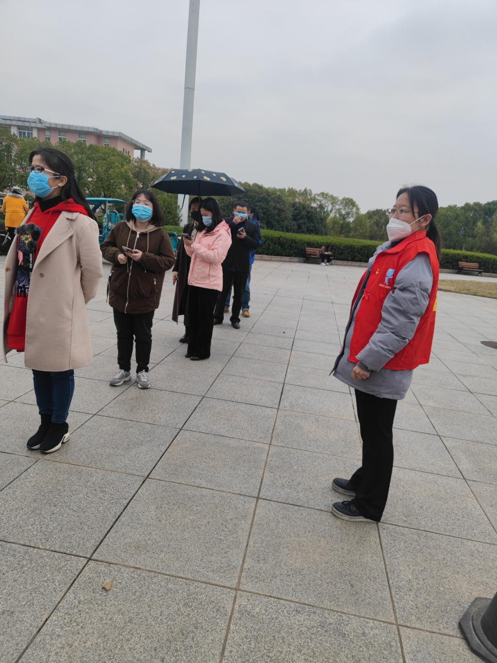 教师党员志愿服务队,为核酸检测的有序开展保驾护航。首批6位党员志愿者在经过校医院的相关培训后投入战疫工作,于是出现了文章开头的那一幕幕场景。她们精神抖擞走进“战场”,开始了3个小时不断线的核酸检测现场服务工作。