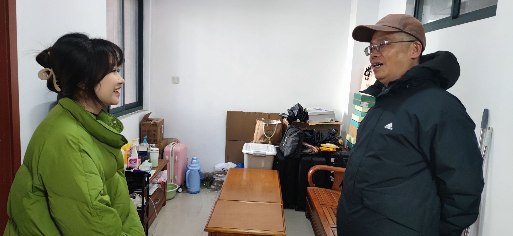 党委书记、政治辅导员张圣兵深入16号宿管站,走访看望结对宿舍的研究生,成人色情