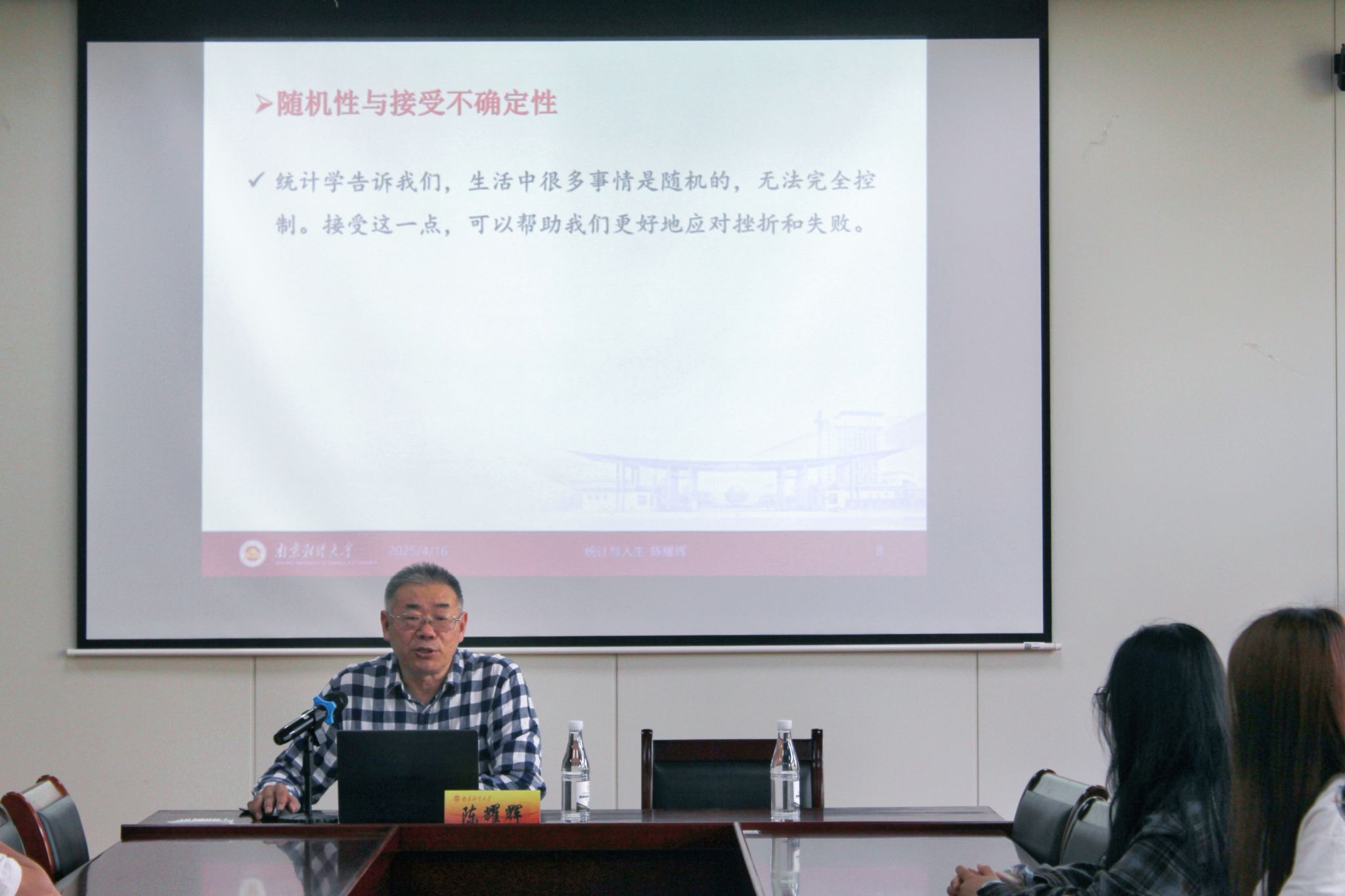 接着,陈耀辉教授围绕“统计与人生的关系”“统计可以改变人生”和“统计与人生处世法则”展开了多维度讲解。他指出,在日常生活里,无论是面临概率选择时的决策判断,还是通过数据实现更深刻的自我认知,统计学都扮演着不可或缺的关键角色。通过系统学习统计学知识,同学们不仅能掌握处理数据的专业技术,更能培养在复杂环境中构建因果模型的能力。