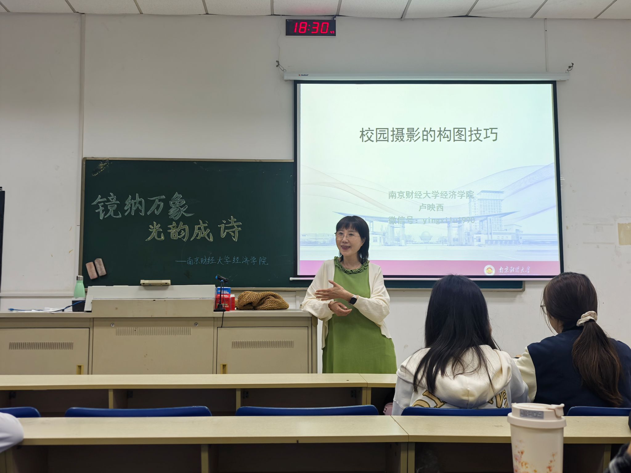活动开场,卢映西老师便点明校园独特的摄影价值:相较于亘古不变的自然景观,校园里的人与景承载着鲜活的青春记忆,每一帧画面都能经历时间的检验,成为永恒的见证。她鼓励同学们多留意身边的点滴美好,从校园摄影开启创作之旅。