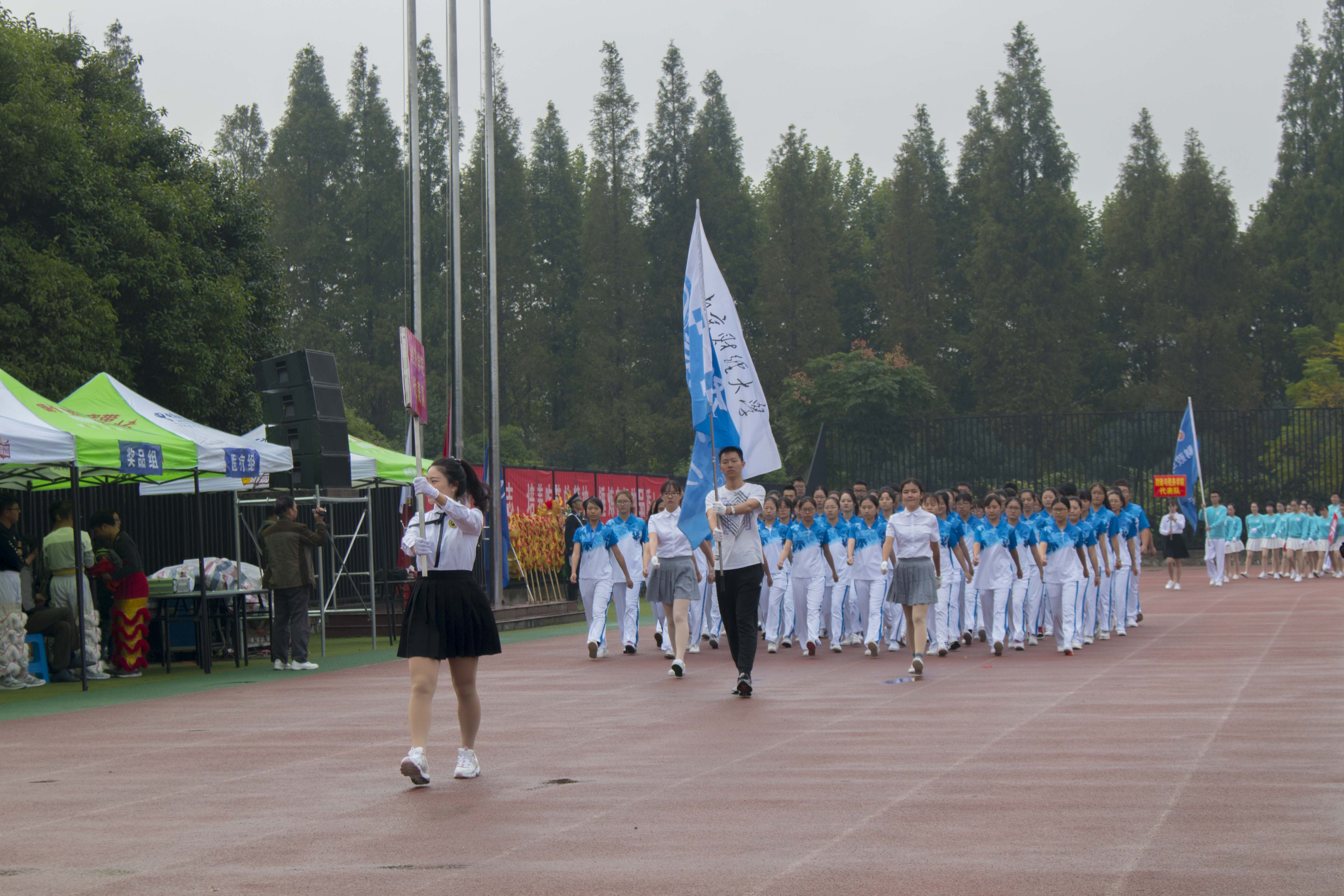 金秋飒爽,锣鼓喧天;青春飞扬,驰骋赛场。10月19日,我校2017年田径运动会开幕式在仙林校区西苑操场盛大举行。校党委书记陈章龙、校长宋学锋、党委副书记焦富民、副校长俞安平、时现、黄建元、邱伟芬等校领导出席此次开幕式,相关职能部门负责人和各学院师生运动员参加了此次运动会。