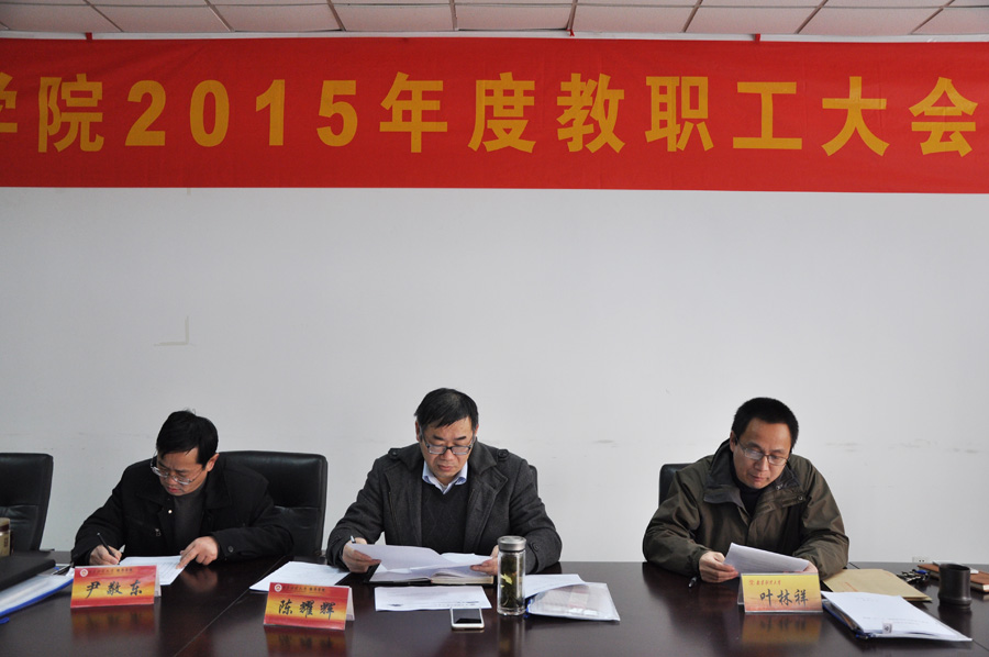 叶林祥副院长作总结讲话,他充分肯定了学院2015年取得的成绩,号召全体教职工凝心聚力,共谋发展,为学院的发展和学院人才培养质量的提高贡献力量!