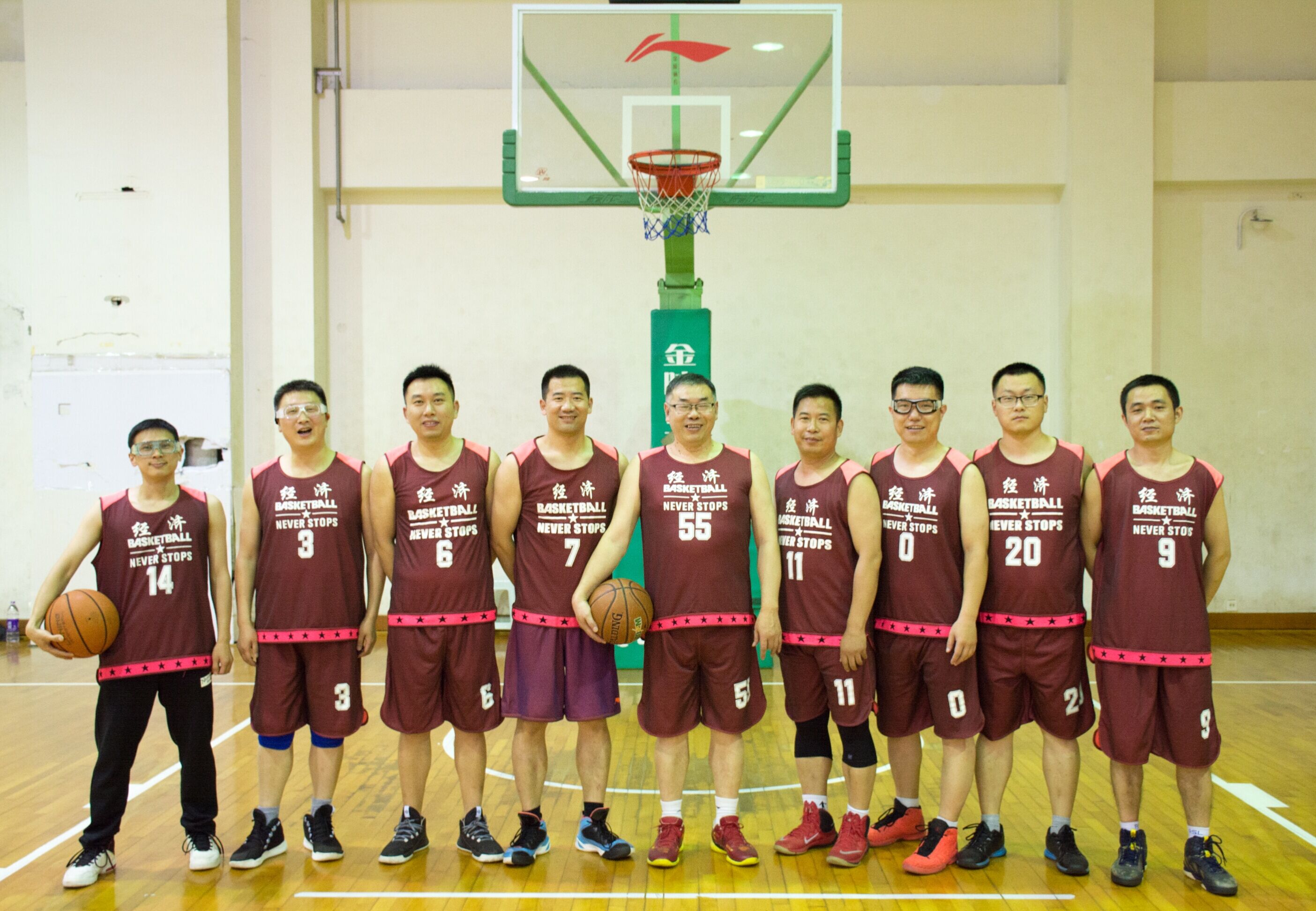 党委书记陈耀辉教授站在三分线上,瞄准篮筐,纵身跳投,命中三分球,更是赢得全场欢呼。最终经济联队以47:26大比分优势战胜机关队取得胜利,获得我校教职工篮球赛的季军。