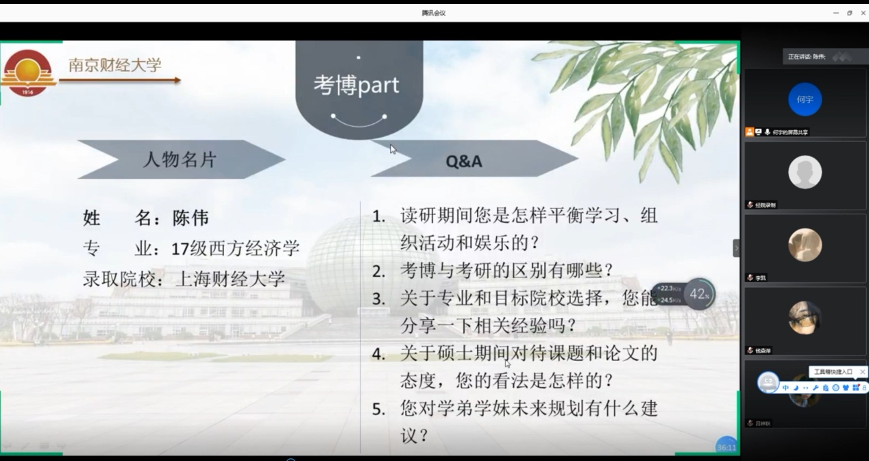 举行线上考博经验分享会。五位硕士毕业于我校的经济类博士及成人色情