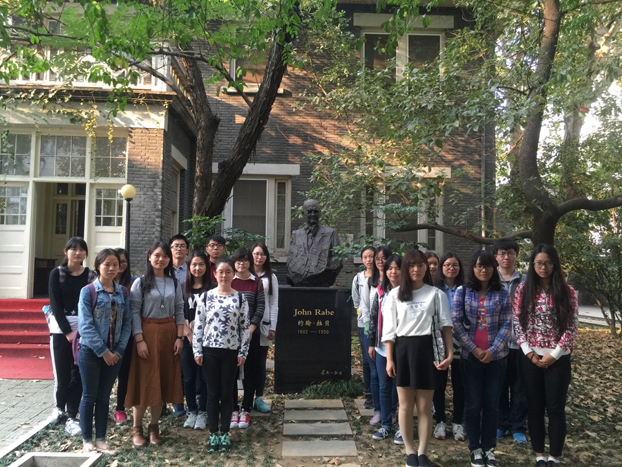 学生支部党员和预备党员在党支部书记黄晓娟老师和聂平老师的带领下参观了拉贝故居。