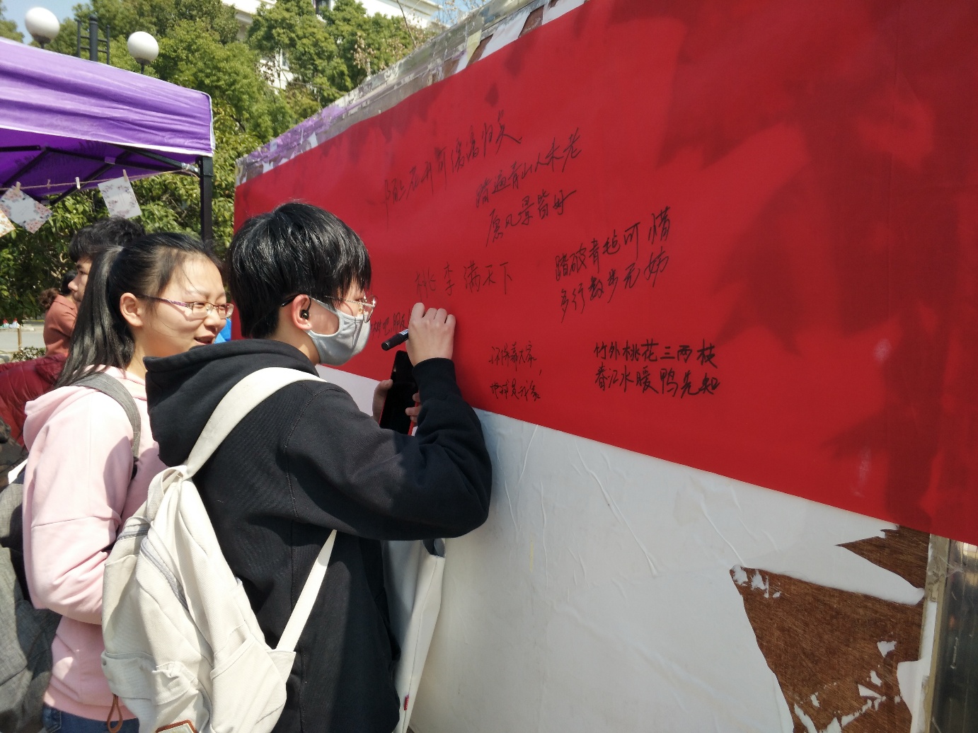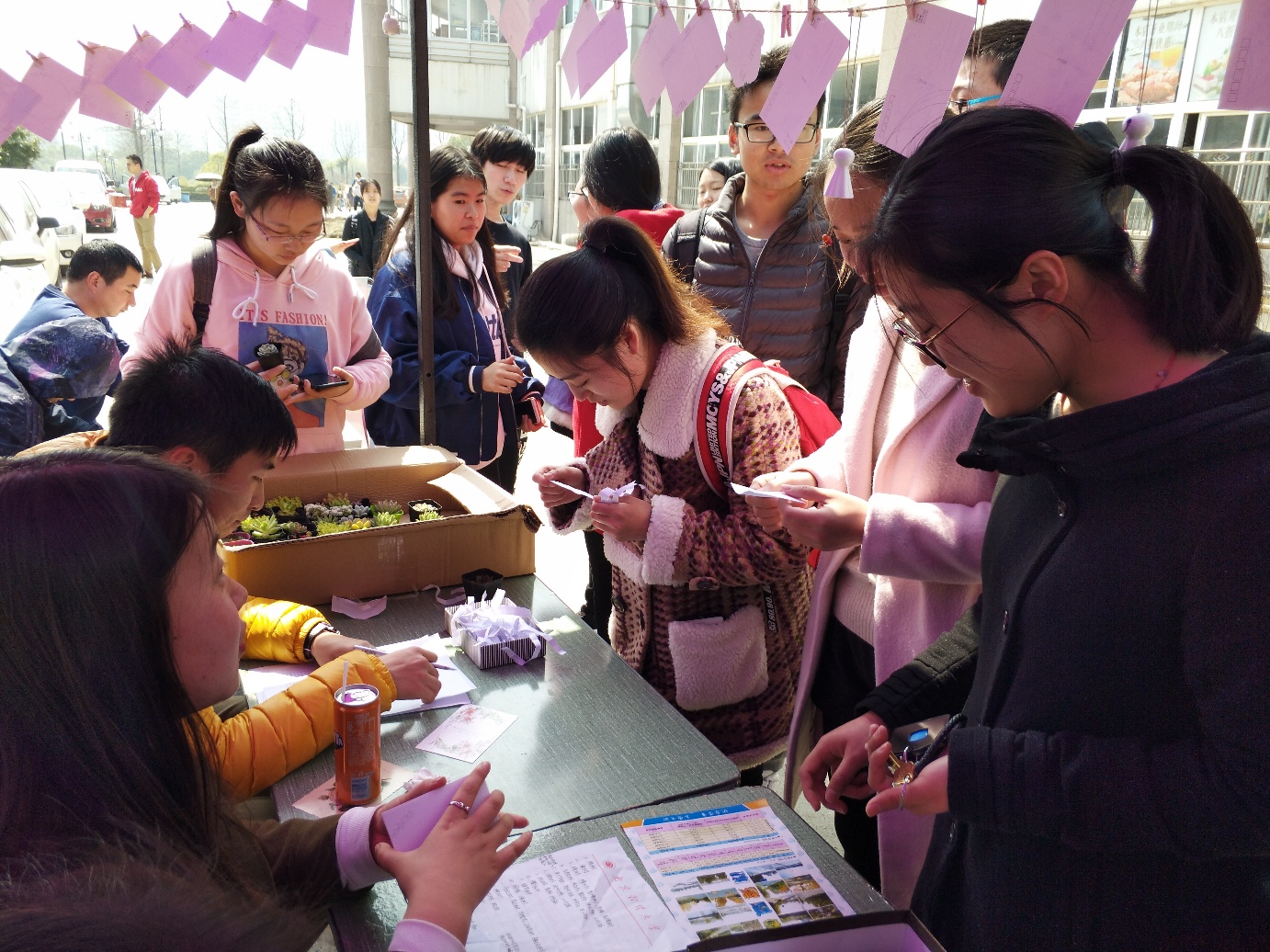 与环境保护协会共同举办“树与春的约会”植树节外场活动,在我校仙林校区中苑食堂外广场欢快举行。活动现场热闹非凡,秩序井然,引来同学们驻足参与。