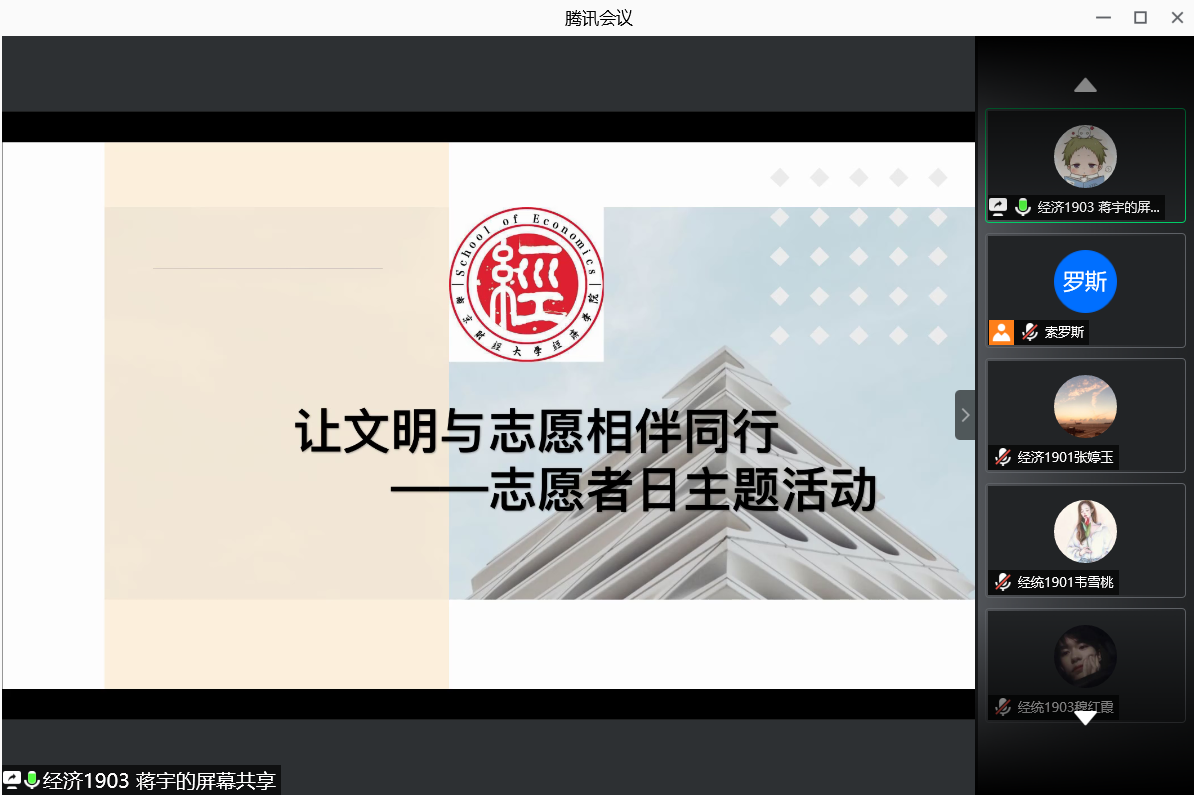 线上召开了“让文明与志愿相伴同行”的志愿者日主题活动。在本次活动中,志愿者们向同学们讲述了自己寒假参与防疫活动的志愿经历,分享自己的心得体会。