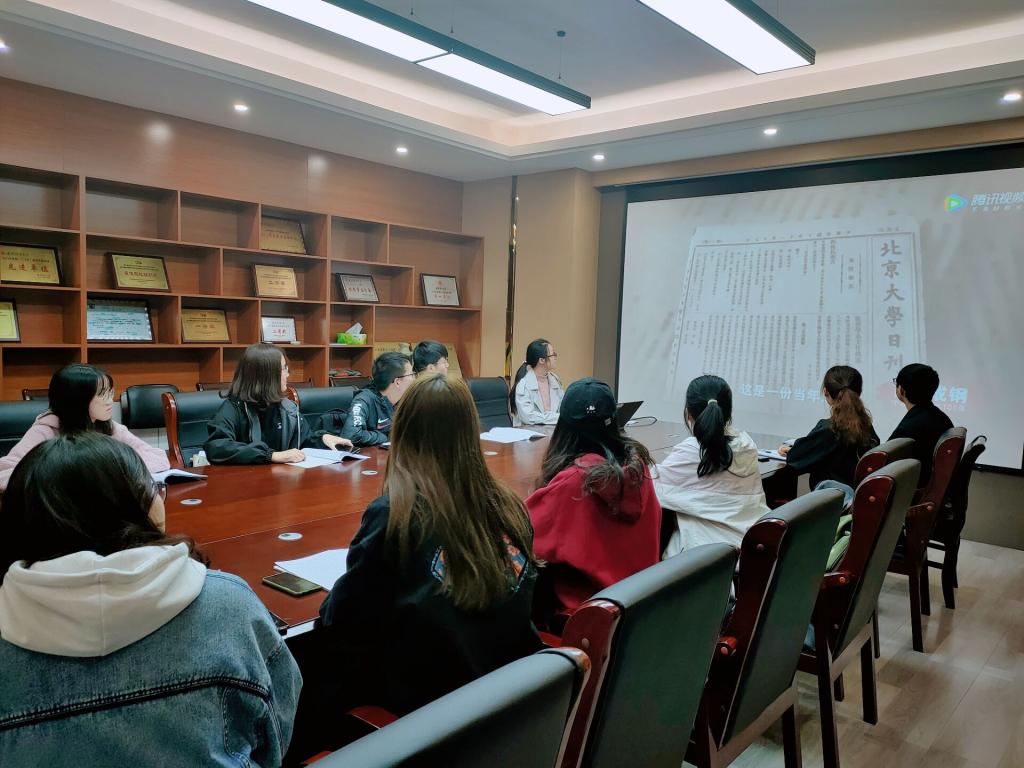 分团委近期“学党史、强信念、跟党走”党史学习教育进展情况进行了总结汇报。然后根据院分团委党史学习教育任务分解表,从团支部衔接、学院特色活动、资料整理、新闻宣传等几个方面进行内容阐释,结合各部门实际情况,进行党史学习教育工作分配。她强调,各团支部与分团委要常坐下来,定期反馈党史学习教育的进展情况,加强沟通交流,重视团队合作。