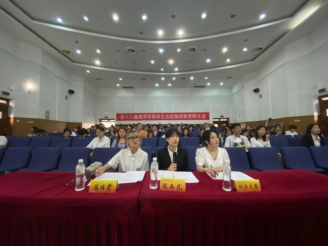 学生会于德济楼专二报告厅召开第十八届学生会终期述职大会。会议邀请校会主席魏正和张之雨、孙鼎立、武若彤、朱欣雨、陈相君五位外院主席做嘉宾,同时刘嘉宁、陈羽凡、陈佳雯主席出席会议,学生会全体成员参加了会议。会议主要内容是汇报本学年的工作成果,对工作中存在的不足进行反思总结并对在学生会工作中有突出贡献的部门、志愿者进行表彰。