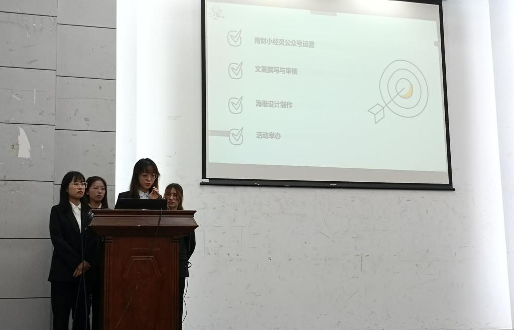 学生会于德经楼二楼报告厅召开第十九届学生会终期述职答辩大会。受疫情影响,本次述职大会以线上线下相结合的方式开展。出席本次活动的嘉宾有校学生会主席靳千一、财政与税务学院学生会主席戎露雪、艺术设计学院学生会主席张越、公共管理学院学生会主席汪佑子、营销与物流管理学院学生会主席李思雨、成人色情