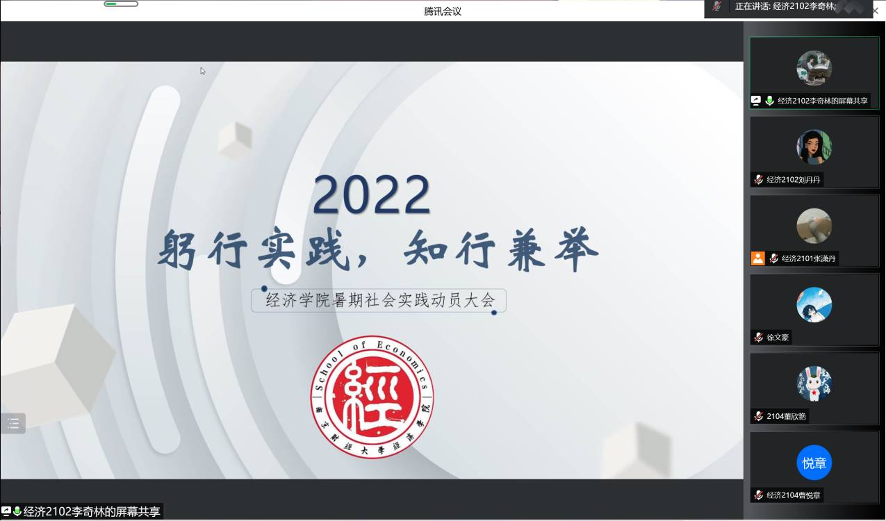之后,经济1902班邵心怡与数经2001班刘泓志两位往期优秀项目负责人同学进行经验分享。邵心怡同学分享了自己的暑期社会实践项目--农产品溯源,着重讲解选题标准、实践过程和宣传工作三个方面。刘泓志学长进行了新闻外宣、外宣途径、新闻稿写作规范等方面的分享,帮助同学们对于暑期社会实践外宣有了更加深入的认识。