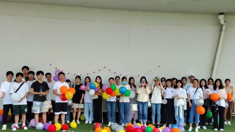 在活动还未开始之时,参加活动的新生们便早已到达场地,大家热情洋溢,脸上挂满了期待。上午十点,活动正式开始,新生们在院学生会带领下,进行了以国庆为主题的手工制作,将制成的手工作品装点草坪,为祖国庆生。同学们有的认真拼装灯笼,有的仔细绘制图画,还有的吹气球进行装点,满怀热忱,全神贯注,用手工制品表达对党和国家的赞美以及对未来的美好期盼。同心合意,庶几有成。在同学们的协力合作下,一个又一个手工作品逐渐成形,精致美丽,引人注目,上面或用亮眼的色彩写下“欢度国庆”以示国庆之际的喜悦,或用灵动的笔触画下朝气蓬勃的小人向国旗敬礼表达对祖国的崇敬。赤忱的心给冰凉的颜料也添了温度,同学们对祖国母亲的爱意与尊敬于色彩间跃动。
