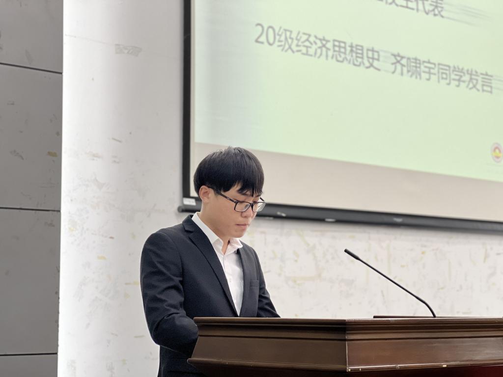 的沃土中,练就出过硬的本领,创造出更加辉煌的明天。本科生新生代表2201班赖嘉彝号召全体新生珍惜时光,把握机会,且行且思,不驰于空想,不骛于虚声。在对专业的潜心学习中,掌握知识,播种热爱,收获喜悦,不坠青云之志,永存赤子之心。研究生新生代表2022级应用统计专业祝千茜从自主性和创新性两个方面表达了对研究生阶段的向往和期待,希望在新的求学之路上活出卓越与非凡、充实与精彩。