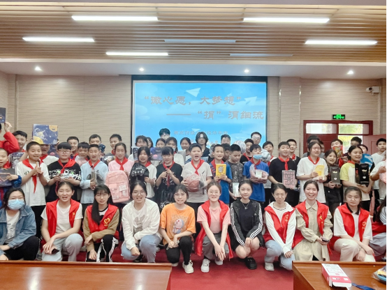 的志愿者们和南京化纤新村小学的孩子们一同合影,记录下这美好的瞬间。