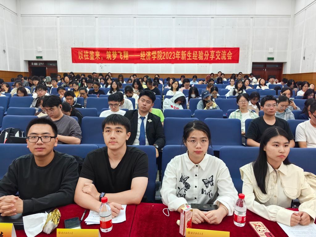 于德济楼二楼报告厅举办了“以往鉴来,筑梦飞翔”新生经验分享交流会。本次活动邀请了经济2101班的徐晓宁同学,数经2101班的张雅玲同学,经统2102班的游涛同学和数统2101班的王星杰同学作为嘉宾分享宝贵经验,成人色情