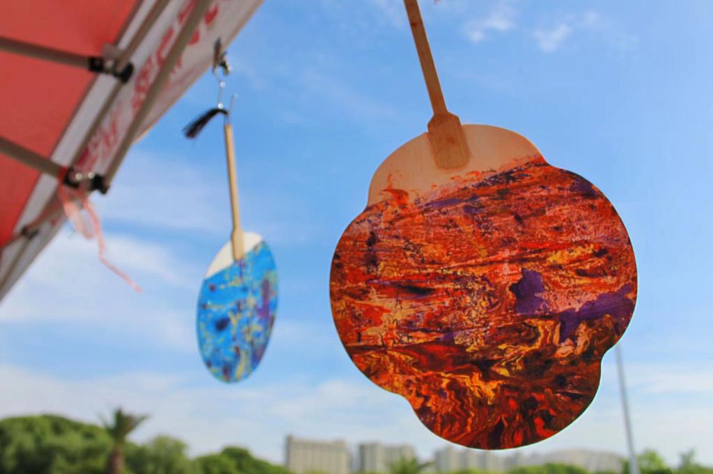 最后,在大学生活动中心广场,同学们现场制作扭扭棒花束。虽然手工制作的花束并不完美,但这是时间的馈赠,是心意的灌注,独一无二的。除了制作扭扭棒花束,一旁的diy漆扇也可供同学们选择。总之,手工制作的过程十分治愈,同学们感受着太阳的暖意,感受着生活的美好,让心灵得到抚慰。