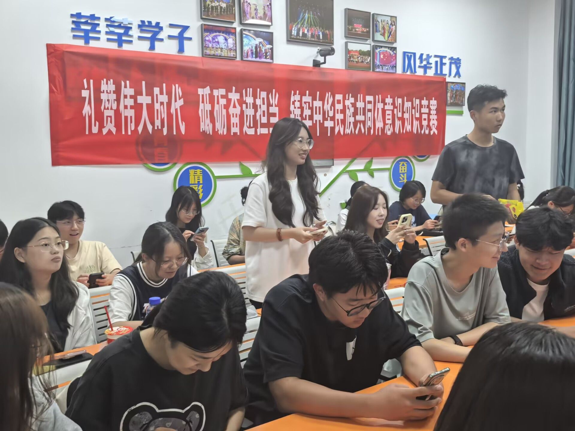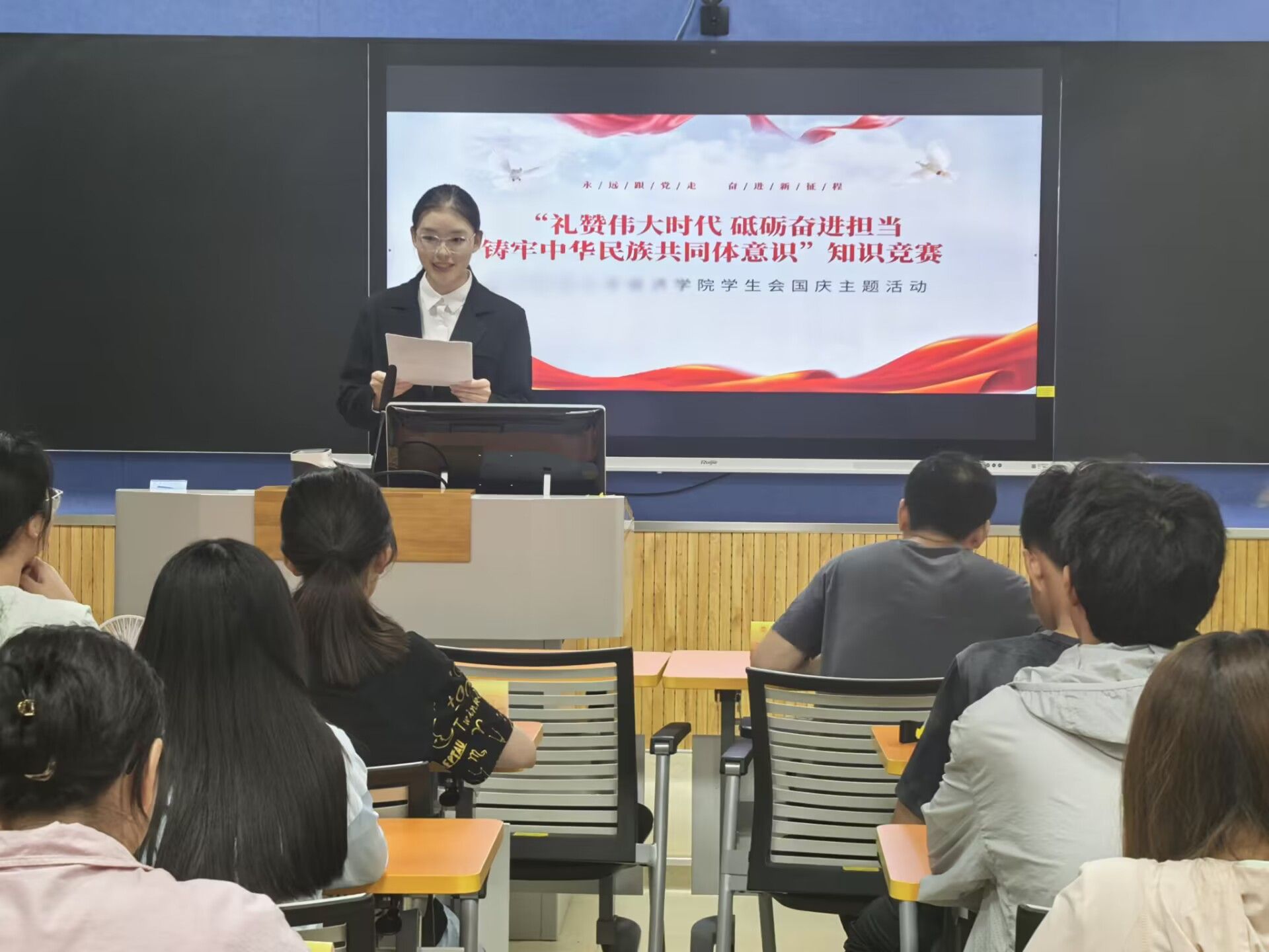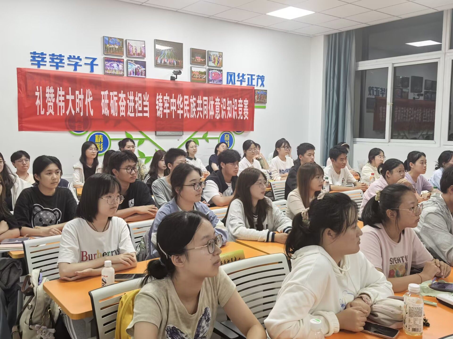 于博文楼104教室开展“礼赞伟大时代,砥砺奋进担当,铸牢中华民族共同体意识”知识竞赛。活动通过集中授课和知识竞答相结合的方式,学习贯彻习近平总书记关于加强和改进民族工作的重要思想,开展党的民族政策法规宣传教育,大力营造爱党爱国爱社会主义的浓厚节庆氛围。本次活动由2024级本科生辅导员张闻老师主讲团课,部分大一、大二学生参与活动。