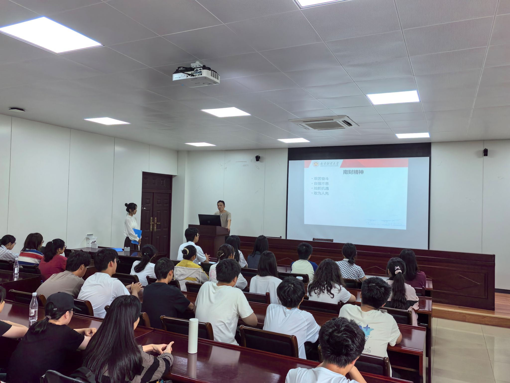 的培养理念和培养成果,张闻老师详细说明了学院的科研特色、竞赛机制和特色品牌活动,呼吁同学们将专业知识和乡村振兴、绿色经济结合起来,积极申请各类项目、参加各项比赛和志愿服务活动,在实践中出真知,在实践中讲奉献,在实践中做贡献,体现经院学子的责任担当和使命担当。第四个环节是青春远航,同学们纷纷发表自己的青春宣言,为成为社会主义的合格建设者和接班人做好充分的准备。