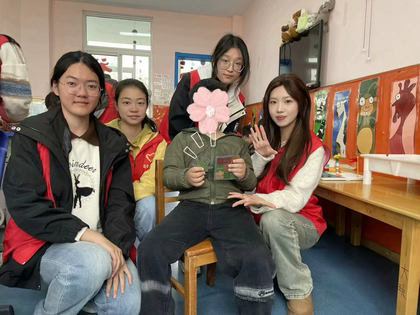 活动接近尾声,每组小朋友都自豪地拿着自己的作品,和志愿者一起合影留念。相机快门声不断响起,定格下每一幕温馨美好的瞬间。这些照片不仅记录了孩子们的创意成果,更见证了志愿者与小朋友之间纯真的情谊。