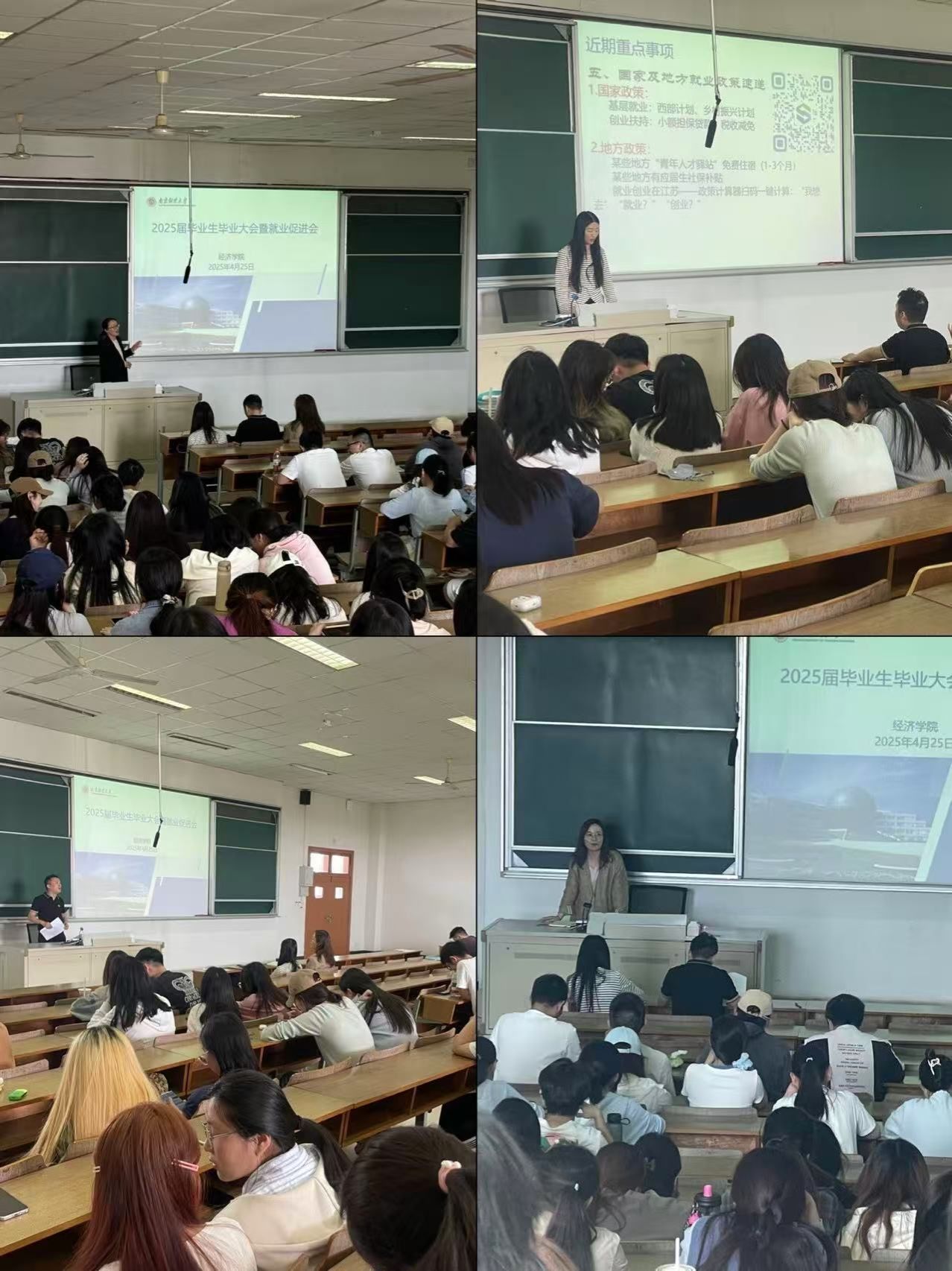 在博观楼JB301开展2025届毕业生就业促进会。学院党委副书记贾亦璞、辅导员老师梁少颖、潘怡、张闻和全体2025届毕业生参加了会议。