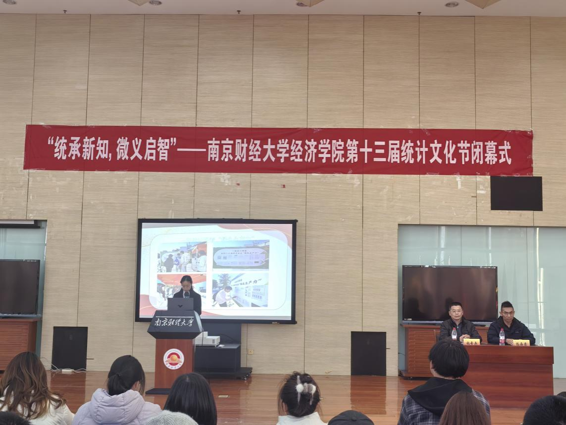 接着,主持人陈锶雨同学对本次统计文化节系列活动进行了全面的总结回顾。在一幅幅生动鲜活的图片展示下,同学们深切感受到了本次统计文化节活动的丰富多彩与独特魅力,纷纷给予了高度肯定。