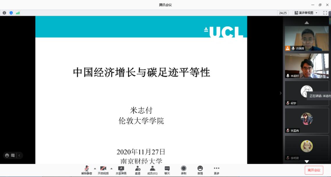 方国昌教授邀请,英国伦敦大学学院米志付副教授在腾讯会议平台作了题为“中国经济增长与碳足迹平等性”的学术讲座。成人色情