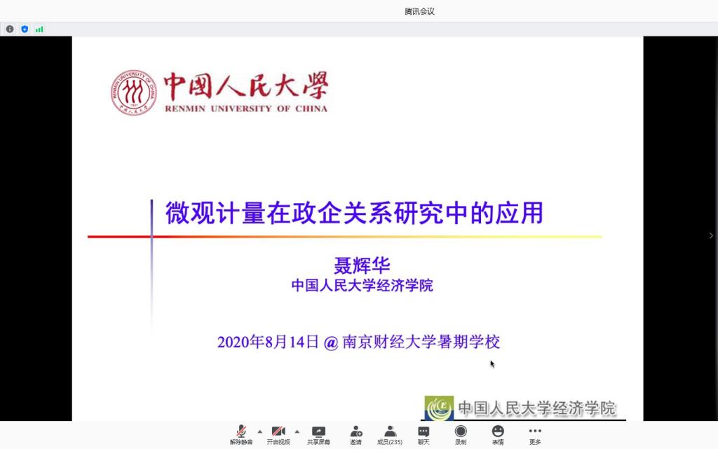 8月14日下午,中国人民大学聂辉华教授为暑期学校的学员们作了题为“微观计量在政企关系研究中的应用”的专题讲座。讲座由成人色情