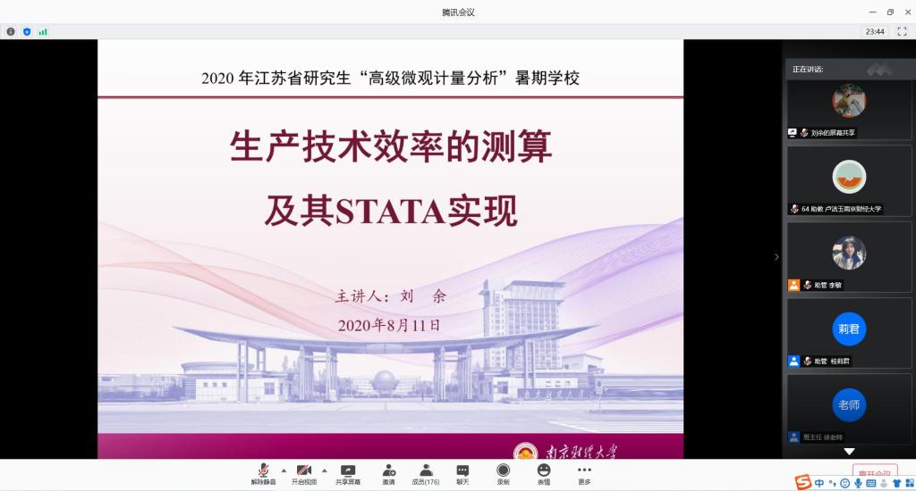 刘余博士为暑期学校的学员们作了题为“生产技术效率的测算及其Stata实现”的专题讲座。