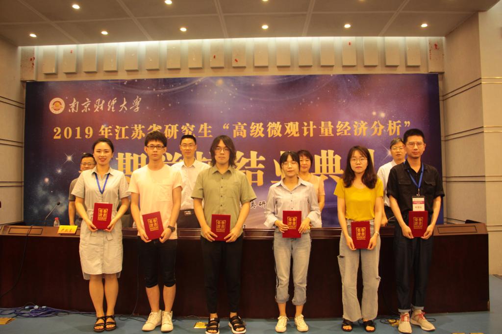 党委研究生工作部部长韩力争宣读《关于表彰2019年江苏省研究生“高级微观计量经济分析”暑期学校优秀成果的决定》。随后主席台领导为受表彰学员颁发了荣誉证书。