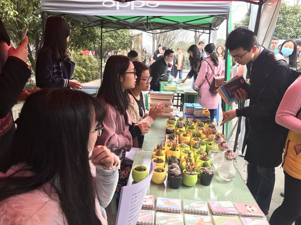 于中苑食堂前开展了“添一抹绿韵”以旧书换绿色小植物的活动。一本书,一抹绿,将春日掩不住的暖意和同学们浓浓的爱心传递下去。