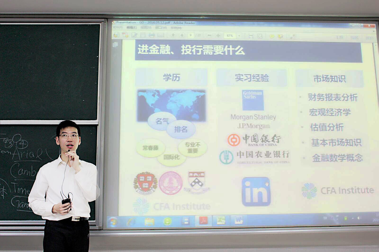 于管理学科楼103室举办了“不一样的经历,不一样的财经人生”为主题的财经工作经历分享会。此次分享会邀请了在投行工作的财务经理胡乔先生成人色情