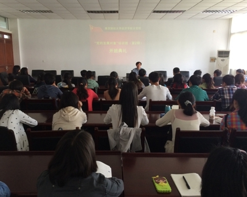 在经济学科楼307会议室举行第二期分党校开班典礼,49名入党积极分子参加,成人色情