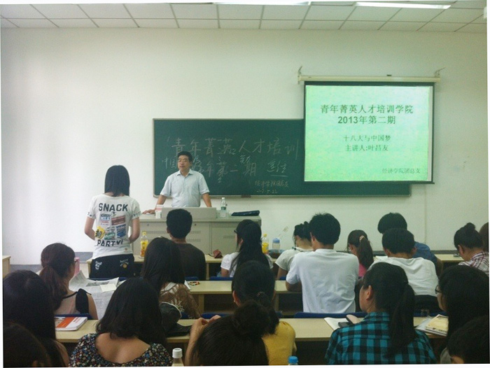 在专一104举办了青年菁英人才培训学院2013年第二期。此次培训邀请到了马克思主义学院党总支书记、院长叶昌友教授作为嘉宾,演讲主题为“十八大与中国梦”,成人色情