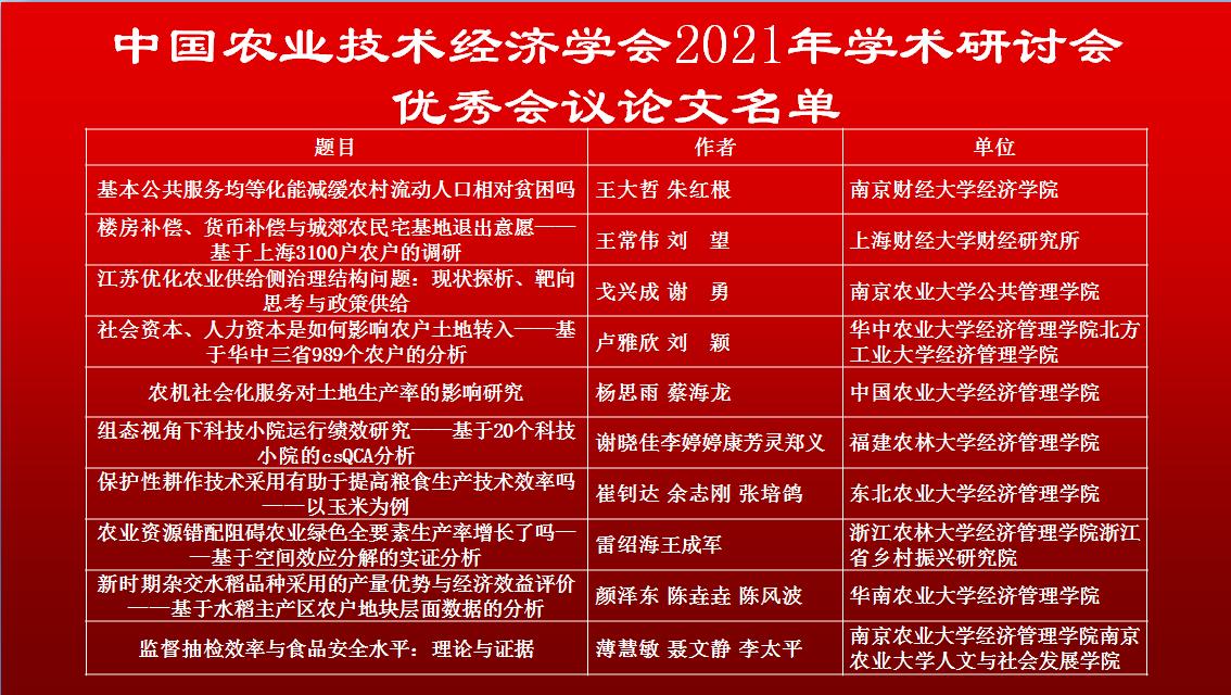 2021年9月26-27日,中国农业技术经济学会2021年学术研讨会于线上举行。本次大会由中国农业技术经济学会和江西省农业科学院主办,中国农业科学院农业经济与发展研究所和江西省农学会承办。