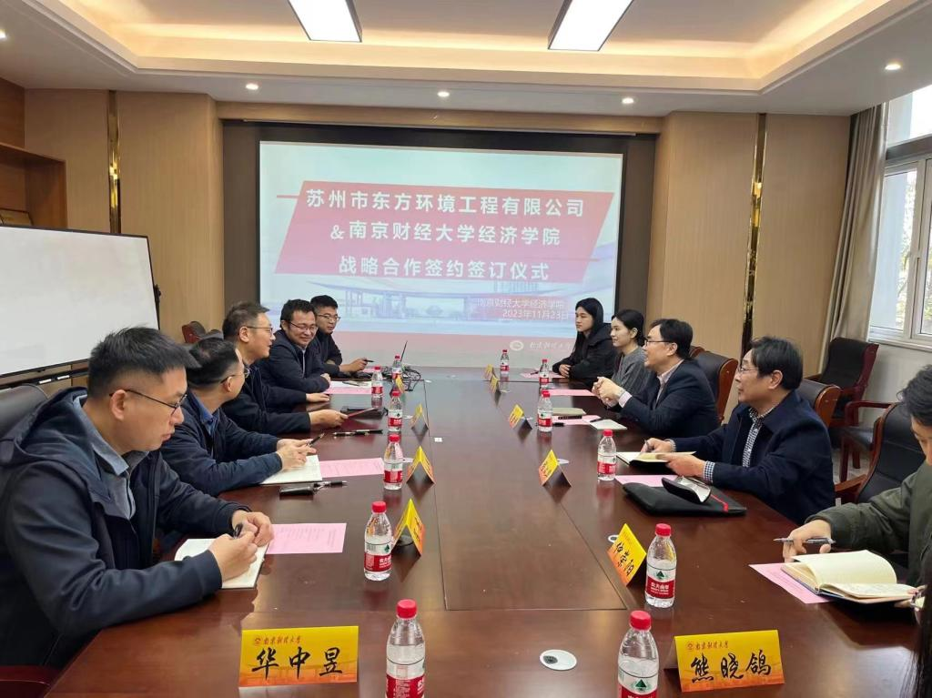 与苏州市东方环境工程有限公司战略合作协议》。根据协议,双方将在碳经济与管理交叉学科人才培养、师资队伍建设、碳经济理论与实践研究、流域环境治理、生态环境政策咨询、实习就业基地建设等方面开展深入合作。
