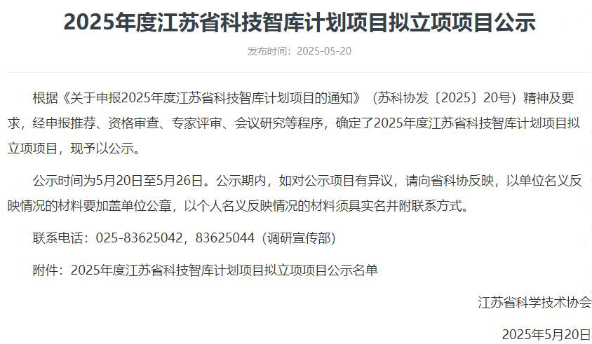 组织申报的2025年江苏省科技智库计划(智库)平台项目获准江苏省科学技术协会立项,成人色情