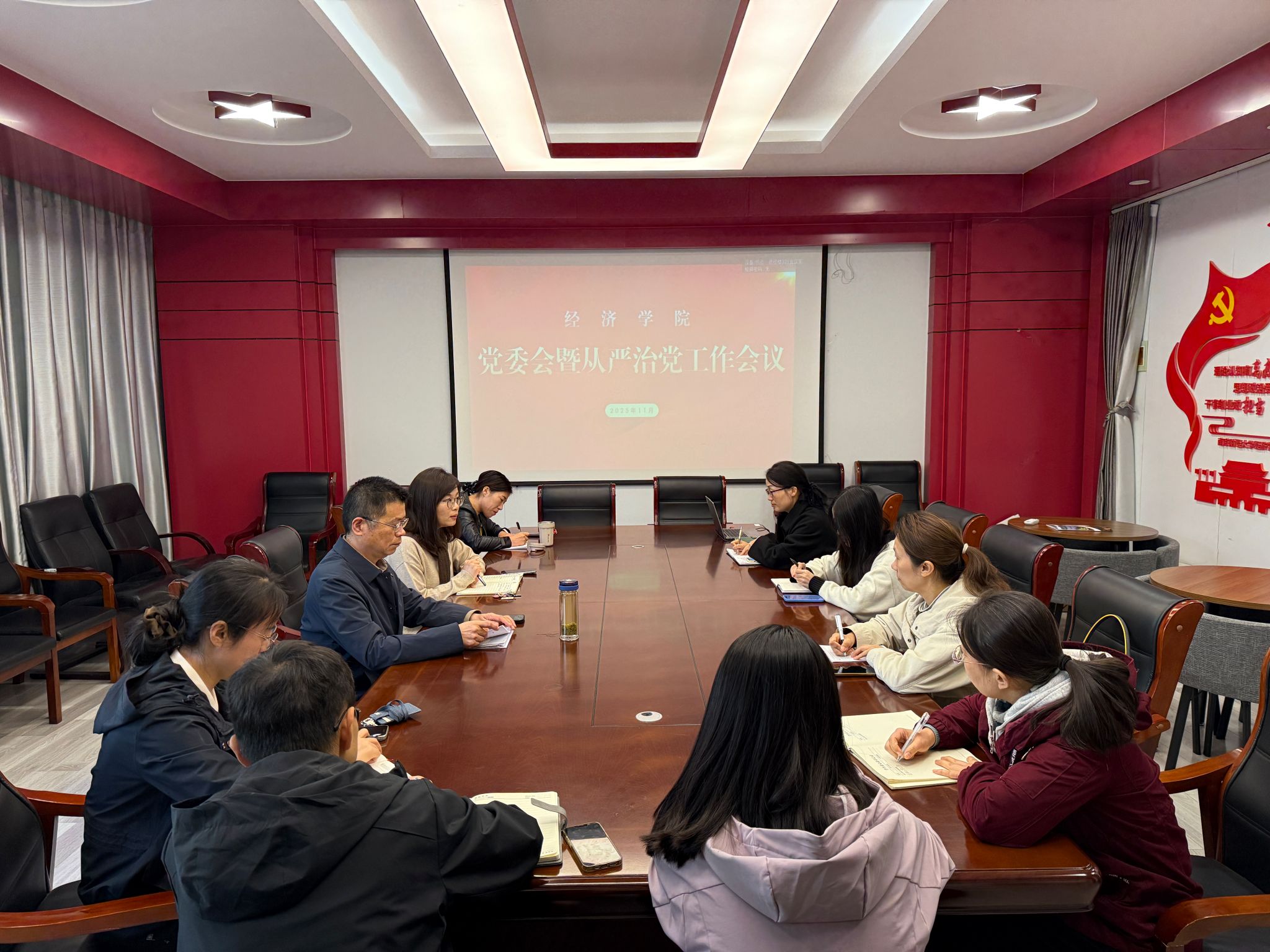 10月31日下午,学院党委在德经楼329会议室召开全面从严治党工作会议。部分党委委员、全体党支部书记参加会议。