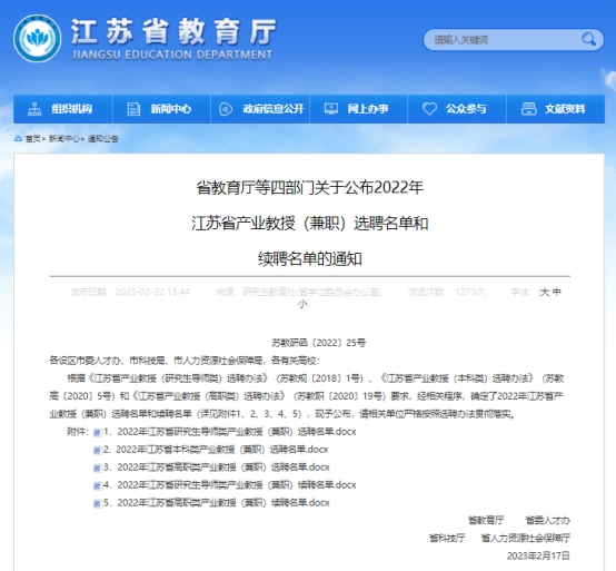 日前,江苏教育厅、省委人才办、省科技厅、省人力资源社会保障厅印发《省教育厅等四部门关于公布2022年江苏省产业教授(兼职)选聘名单和续聘名单的通知》(苏教研函〔2022〕25号),成人色情