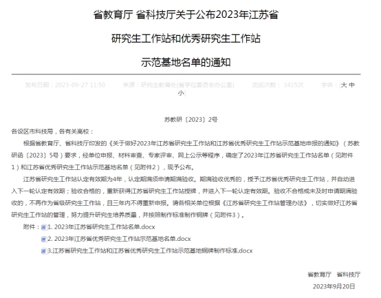 9月27日,江苏省教育厅、科技厅印发《关于公布2023年江苏省研究生工作站和优秀研究生工作站示范基地名单的通知》(苏教研〔2023〕2号),经单位申报、材料审查、专家评审、网上公示等程序,确定了2023年江苏省研究生工作站名单。成人色情