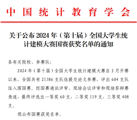 8月26日,中国统计教育学会公布2024年(第十届)全国大学生统计建模大赛国赛获奖名单,成人色情