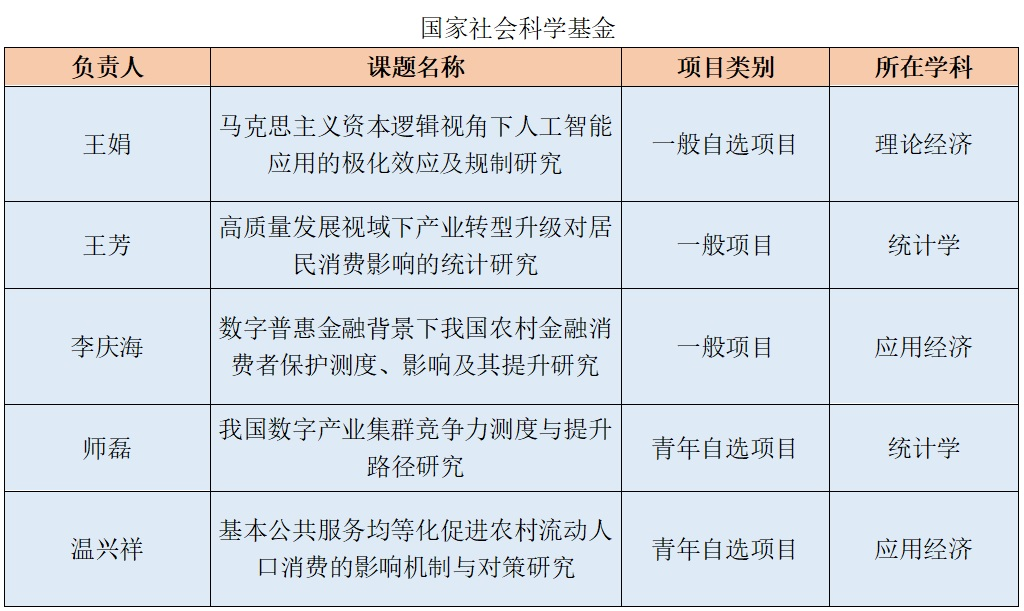 2021年,学院教师获得国家社科基金和国家自科基金9项,其中,国家社会科学基金立项5项,国家自然科学基金立项4项。