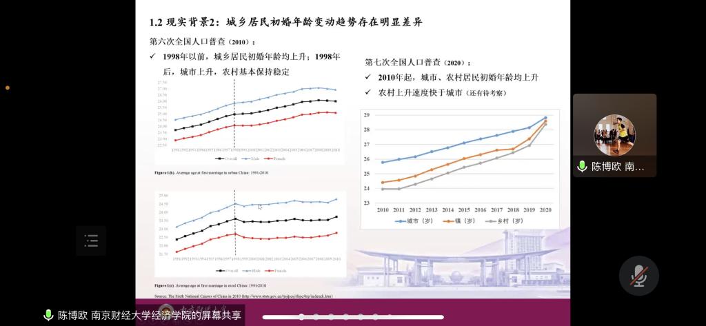 在线上成功举办了双周学术论坛。本期论坛由经济系讲师陈博欧带来题为《房价与我国居民初婚年龄——来自土地市场化改革的证据》(原文英文标题:Rising housing prices and marriage delays in China: Evidence from the urban land transaction policy)的学术报告。尹敬东副院长主持了本次学术论坛,成人色情