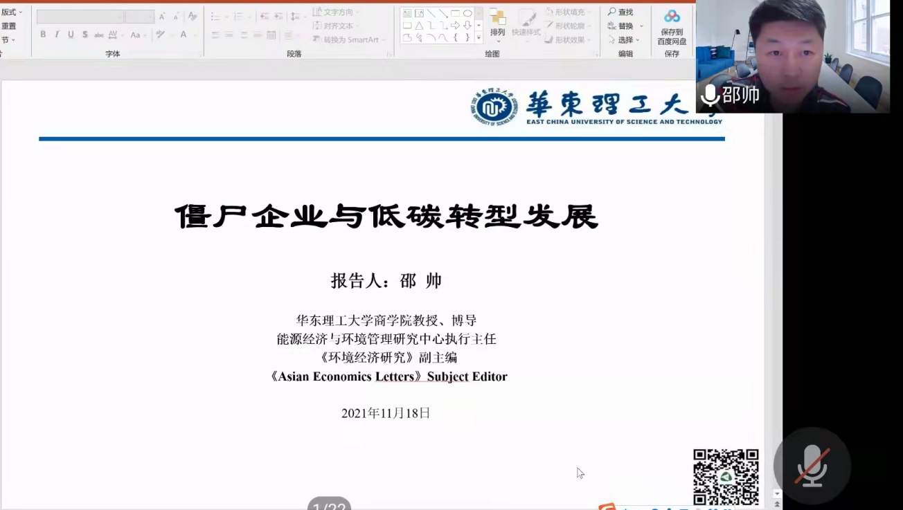11月18日,华东理工大学商学院博导、能源经济与环境管理研究中心执行主任邵帅教授来成人色情