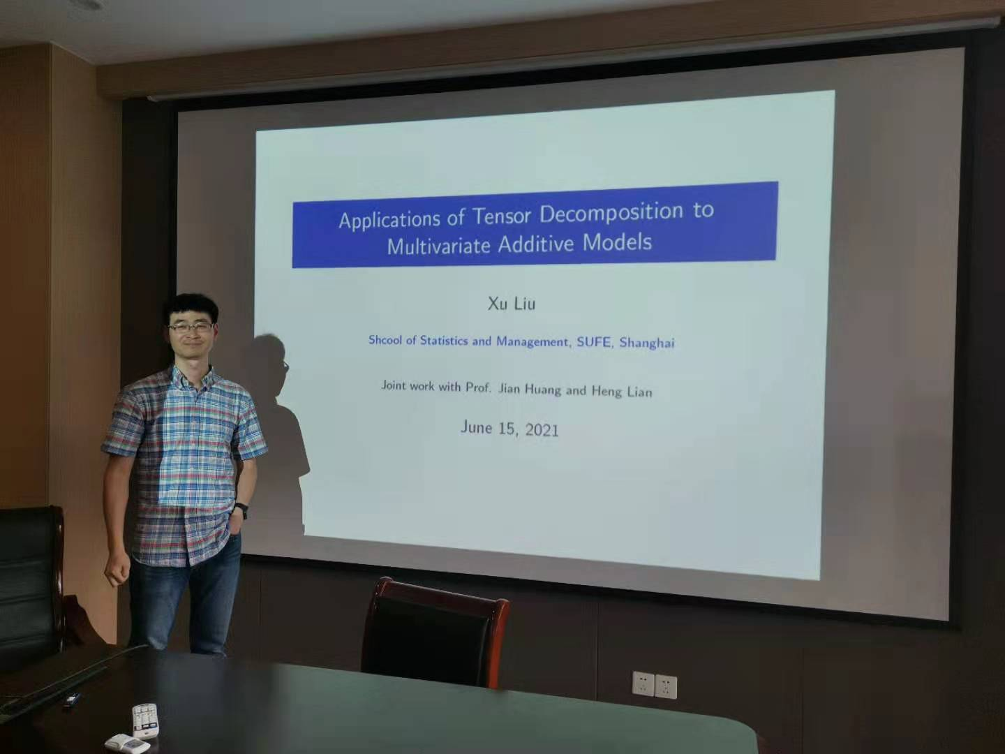 特邀上海财经大学副教授刘旭博士,于2021年6月16日下午14:00在德经楼323会议室,作有关多元加性模型的张量分解应用的报告。报告会由尹敬东副院长主持,陈海清、陈冉冉、史兴杰、穆燕等老师以及研究生参加了会议。