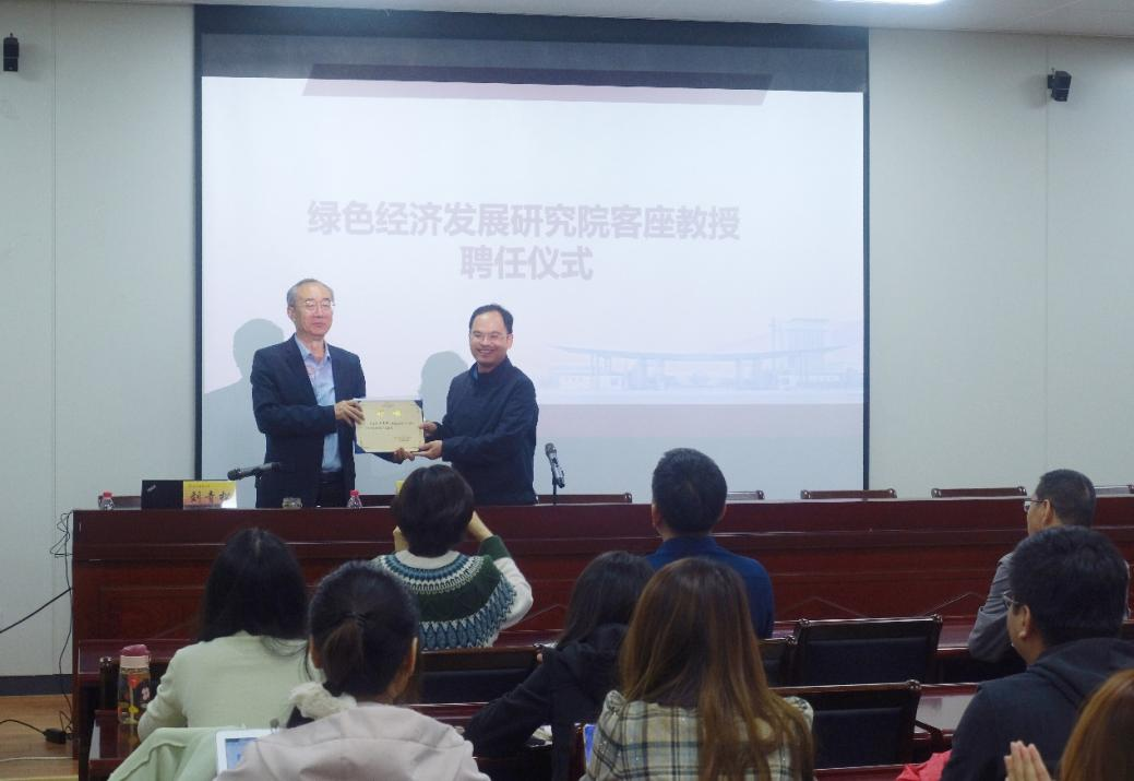 4月17日下午,绿色经济发展研究院刘青松客座教授聘任仪式暨学术报告会在德经楼307会议室举行。仪式由刘小峰副院长(主持工作)主持,学院部分师生出席仪式。
