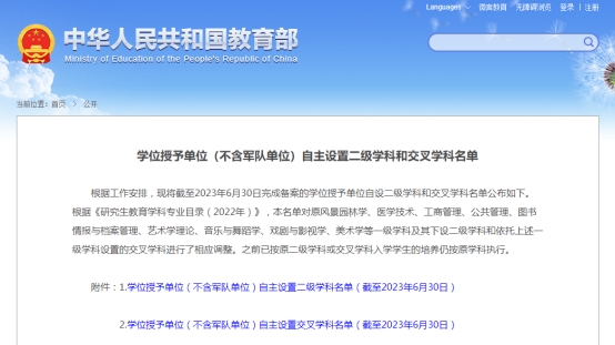 10月9日,教育部公布最新学位授予单位(不含军队单位)自主设置二级学科和交叉学科名单,成人色情